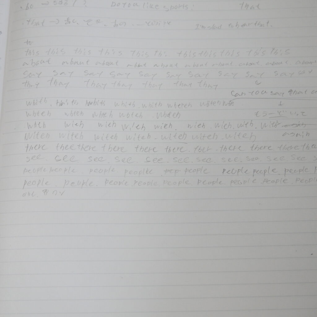 苦手な単語をノートにかいていますが筆圧は弱いし続かないようです
