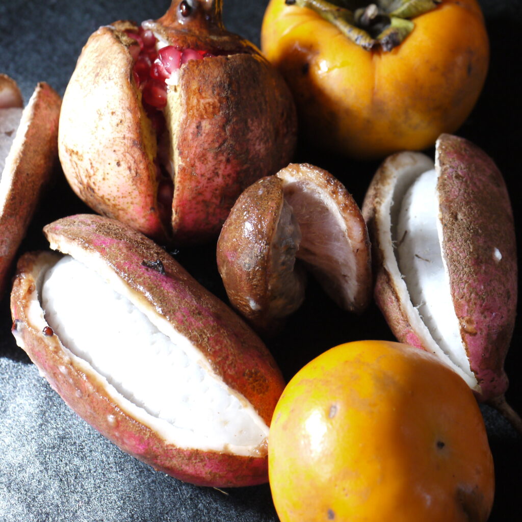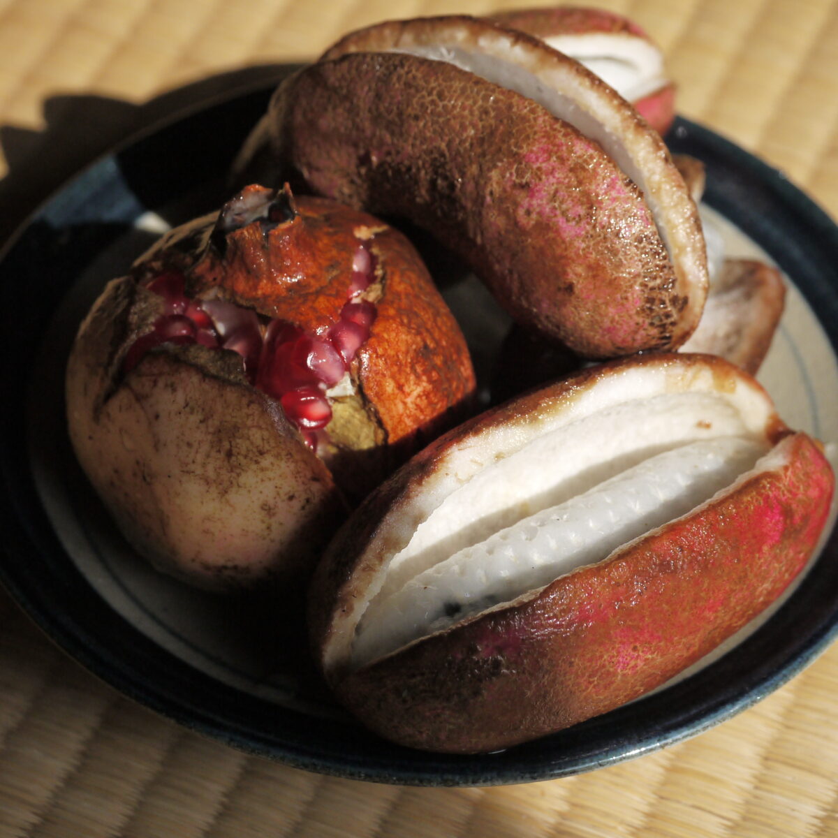 これに引き続いて,周りから柿やあけびやザクロのプレゼントをいただきました